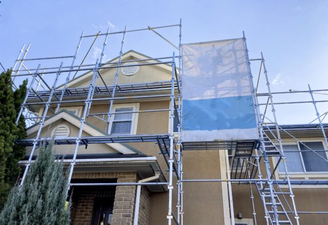 足場設置・養生を行い、周囲や近隣に配慮して工事を開始します。